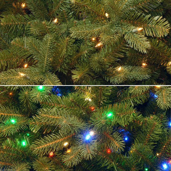 - Features 1000 Dual Color LED bulbs that can switch between clear and multicolor lights. This feature includes a switch to control ten different light functions, allowing the bulbs to twinkle, flash or fade on either color setting.